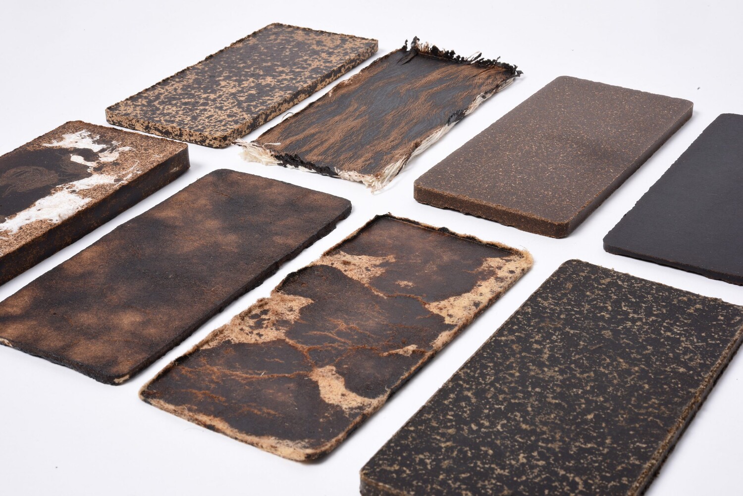 Die Schwarzlauge ist ein weitestgehend unterschätztes Material. In Deutschland werden 98% (=50 Millionen Tonnen pro Jahr) verbrannt. Dabei enthält das Nebenprodukt der Papierindustrie ein vielversprechendes Biopolymer: Lignin. Als zweithäufigstes Polymer der Erde könnte es eine wichtige Rolle in der Entwicklung weg von erdölbasierten und hin zu biobasierten Stoffen spielen. In BLACK LIQUOR haben wir zusammen mit dem Holzforschungsinstitut Fraunhofer WKI neue Ansätze entwickelt, wie das Polymer in Zukunft mehr Anwendung finden kann. Die entwickelten Materialien sind in Herstellung und Verwendung harmlos und basieren auf nachwachsenden Rohstoffen und industriellen Nebenprodukten und tragen so dazu bei bisherige Abfallströme in neue Materialkreisläufe zu überführen und CO2 Emissionen zu verhindern. So ist eine Reihe an Materialeigenschaften und Anwendungsmöglichkeiten entstanden: Von festen Plattenwerkstoffen für den Möbelbau zu flexiblen Lederalternativen für die Modeindustrie.