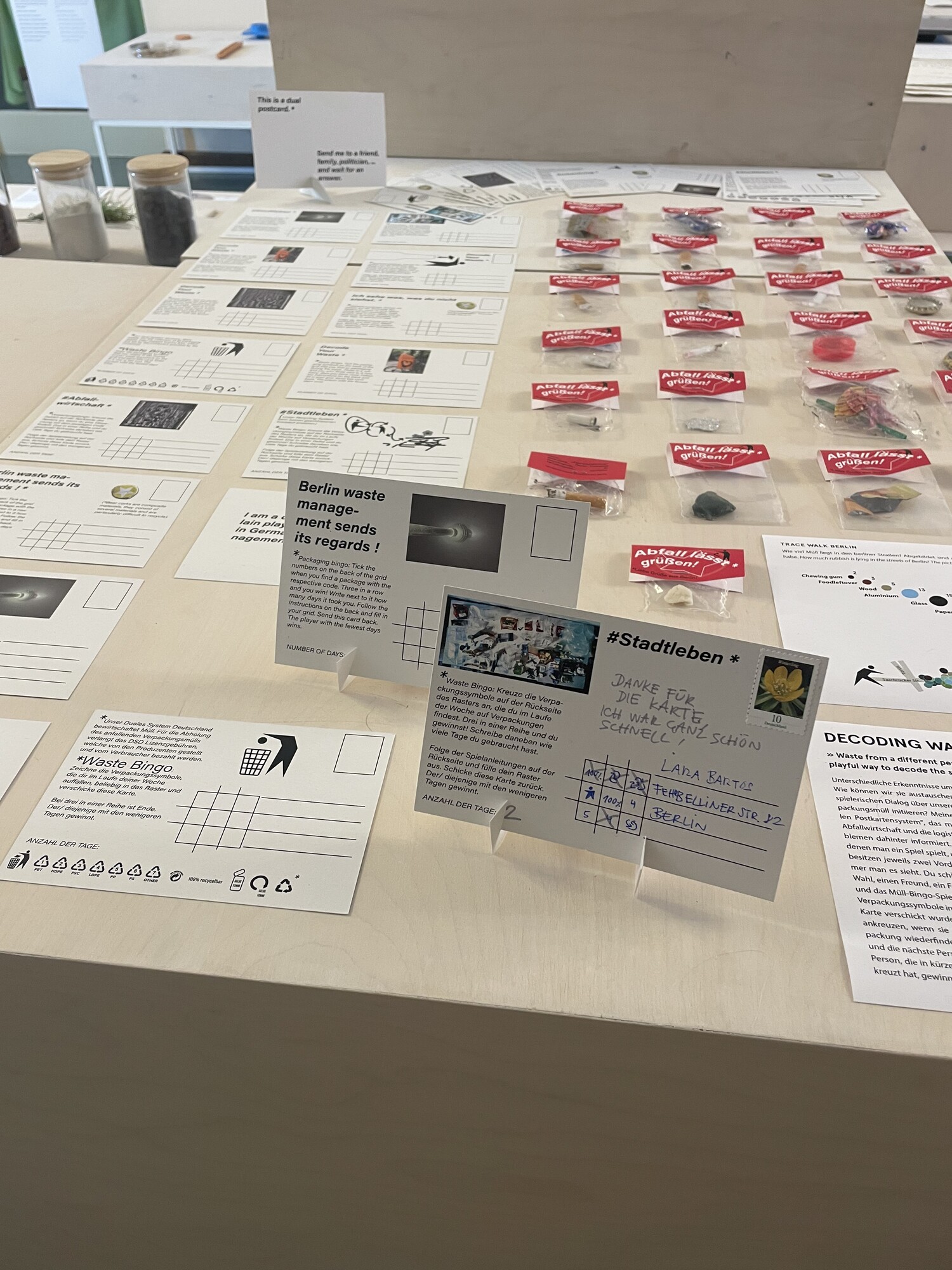 Meine Idee umfasst ein “Duales Postkartensystem”, das multiperspektivisch über unsere Abfallwirtschaft und den logistischen und systematischen Probleme dahinter informiert. Die interaktiven Postkarten, auf denen man ein Spiel spielt, um seinen Abfall zu entschlüsseln, besitzen jeweils zwei Vorder- oder Rückseiten, wie auch immer man es sieht.