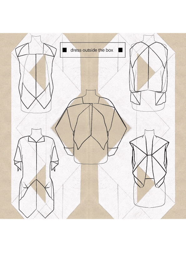 Meine Basis ist das Zero-Waste Konzept, bei dem versucht wird kein Schnittabfall bei der Bekleidungsherstellung zu produzieren. Ausgehend von der Idee des Tangram-Spiels und der sich ergebenden Formenvielfalt allein aus ein paar Grundelementen, werde ich eine Kollektion entwerfen, bei der kein Verschnitt entsteht. Im weiteren Prozess soll auch freier mit anderen Formen gearbeitet werden. Zusätzlich zur gefertigten Kollektion wird es die Schnitte (geordnet nach Schwierigkeitsgrad) im Sinne eines Open-Source Systems für den Konsumenten auch zu kaufen geben. Ein solches selbstgenähtes und vielleicht individuell modiziertes Bekleidungsstück unterstützt die Beziehung zur eigenen Garderobe, lässt die Arbeit und den Wert eines Kleidungstückes erkennen und fördert somit den bewussteren Umgang mit Mode.