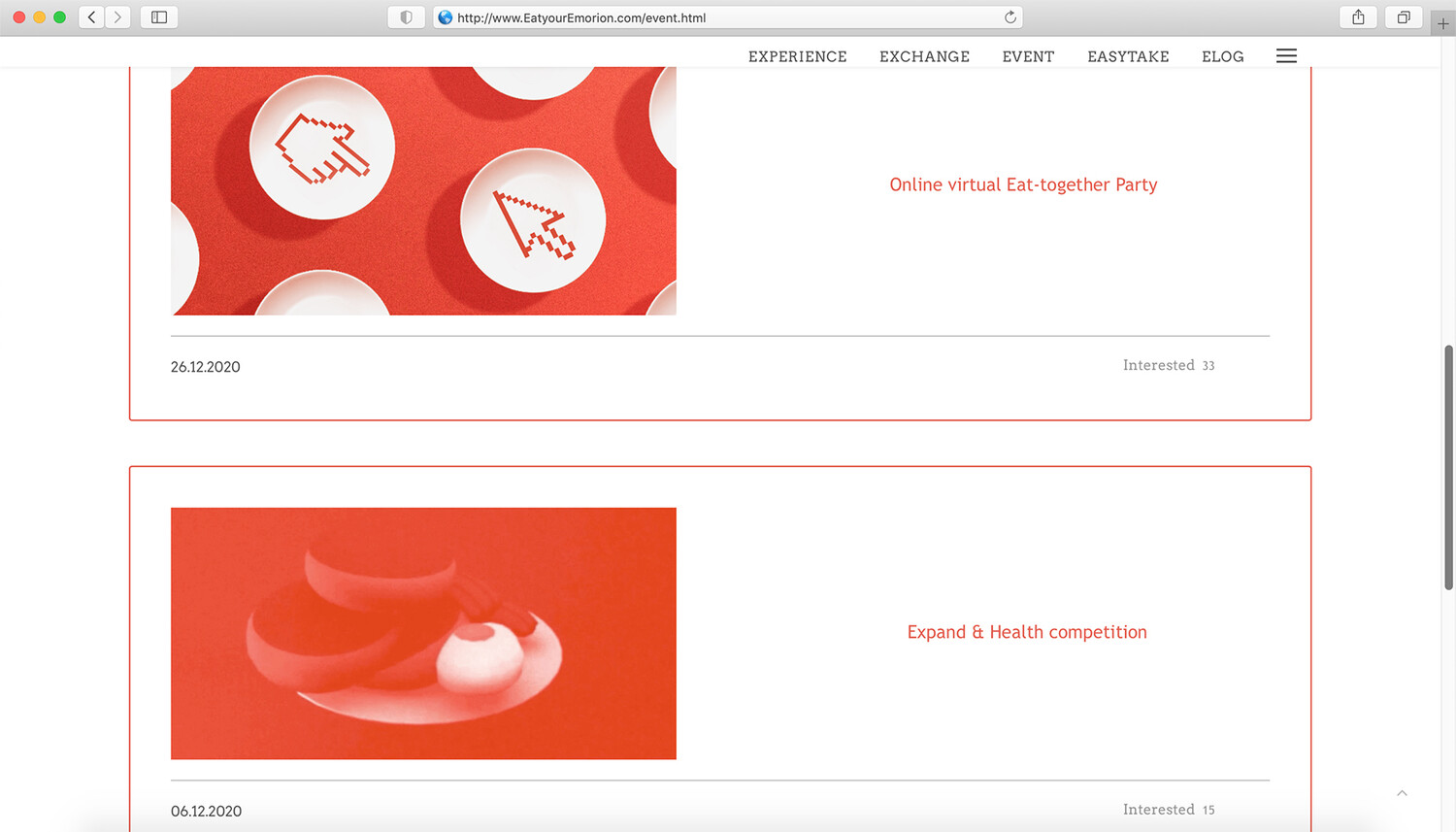 Mit Bezug auf die Corona-Ausnahmesituation zielt mein Projekt darauf, die Zubereitung, das Essen selbst und deren Gemeinschaftsformen im Rahmen einer Online-Plattform miteinander zu verbinden. Sie besteht aus fünf Teilen, die jeweils den Bedürfnissen der Menschen nach Erleben, Teilen, sozialer Kommunikation, dringendem Bedarf und Information entsprechen und einen „rationalen Esszyklus“ fördern sollen.