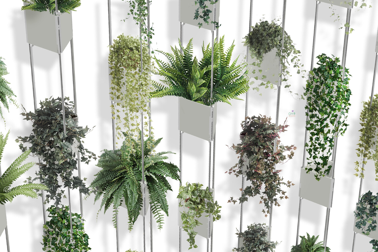 Tatsächlich handelt es sich auch eher um einen modular angelegten Pflanzenvorhang, der die dahinterliegende Gebäudewand vollkommen intakt und die Luft dazwischen ungehindert zirkulieren lässt. Er kann aber auch an ganz anderen Orten und völlig frei aufgehängt werden. Installiert wird die Bepflanzung mit Hilfe gespannter Stahlseile, die Wasser- und Nährstoffversorgung erfolgt über ein integriertes Pumpensystem. Der immer wieder veränderbaren Gestaltung sind kaum Grenzen gesetzt, von nach außen gekehrten spießigen Zimmerpflanzenidyllen bis hin zu wild wuchernden dichten kleinen Urwäldern.