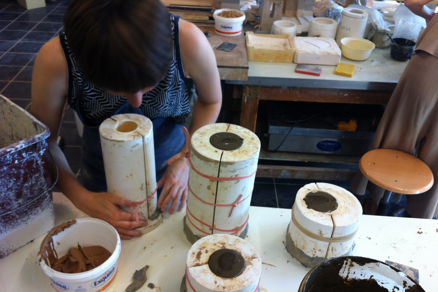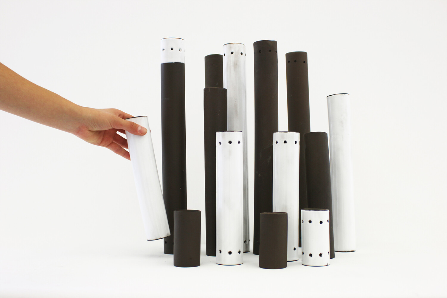 Die Anordnung der übereinander gestapelten Röhren erinnert an gefällte Bäume im Wald. Ob als freistehendes Objekt im Raum selbst oder angebracht an der Außenfassade eines Gebäudes, der Kontext wird durch das Objekt klanglich aktiviert. Für das Projekt war es besonders wichtig, die Idee mit dem regionalen Produkt des Sauener Tons umzusetzen; so bekommt die Region ihren eigenen durch das Material erzeugten Klang.