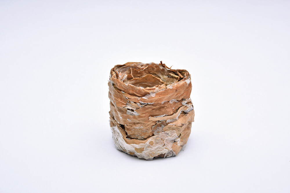 Entstanden ist eine Serie schlichter Gefäße, die sich trotz gleicher Basisrohstoffe und Herstellungsmethode durch individuelle Einzigartigkeit auszeichnen. Ihren besonderen Charakter erhalten sie durch das Zusam- menspiel der ungewöhnlichen, rohen Materialität und den damit kontrastierenden geometrischen Formen. Das Projekt versteht sich aber auch als Versuch, vorhandene Kreisläufe und festgefahrene Strukturen zu überdenken und neu zu interpretieren.