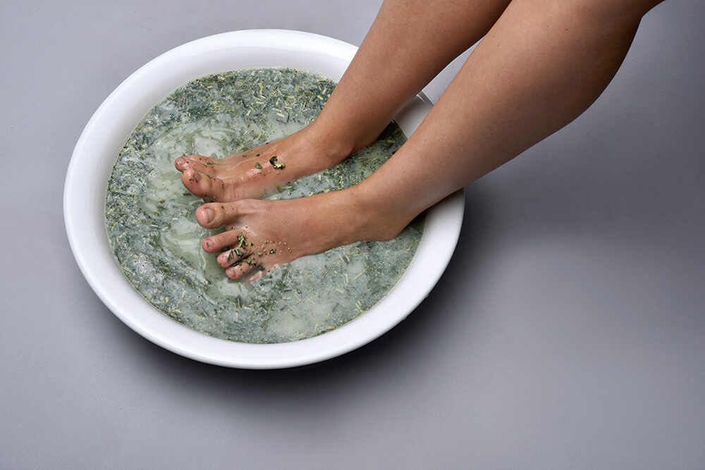 Meine Teeverpackung besteht aus den Bestandteilen der Brennnesselp anze und lässt sich in ihrer zwei- ten Nutzung optimal als Badezusatz verwenden. Die Herausforderung bestand vor allem in der perfekten Rezeptur. Das Komposit aus Brennnesseln und natürlichen Bindern sollte sowohl die nötige Stabilität als Hülle gewähren als auch im Wasser leicht au ösbar sein. Zutaten wie Natron, Zitronensäure und Backpulver bewirkten einen leicht sprudelnden Effekt. Auch mit der äußeren Erscheinung wurde experimentiert. So ließ sich durch den Grad der Zerkleinerung und variable Mengenkombinationen von Blättern und Stängeln die Farbigkeit in einem großen Bereich beein ussen.