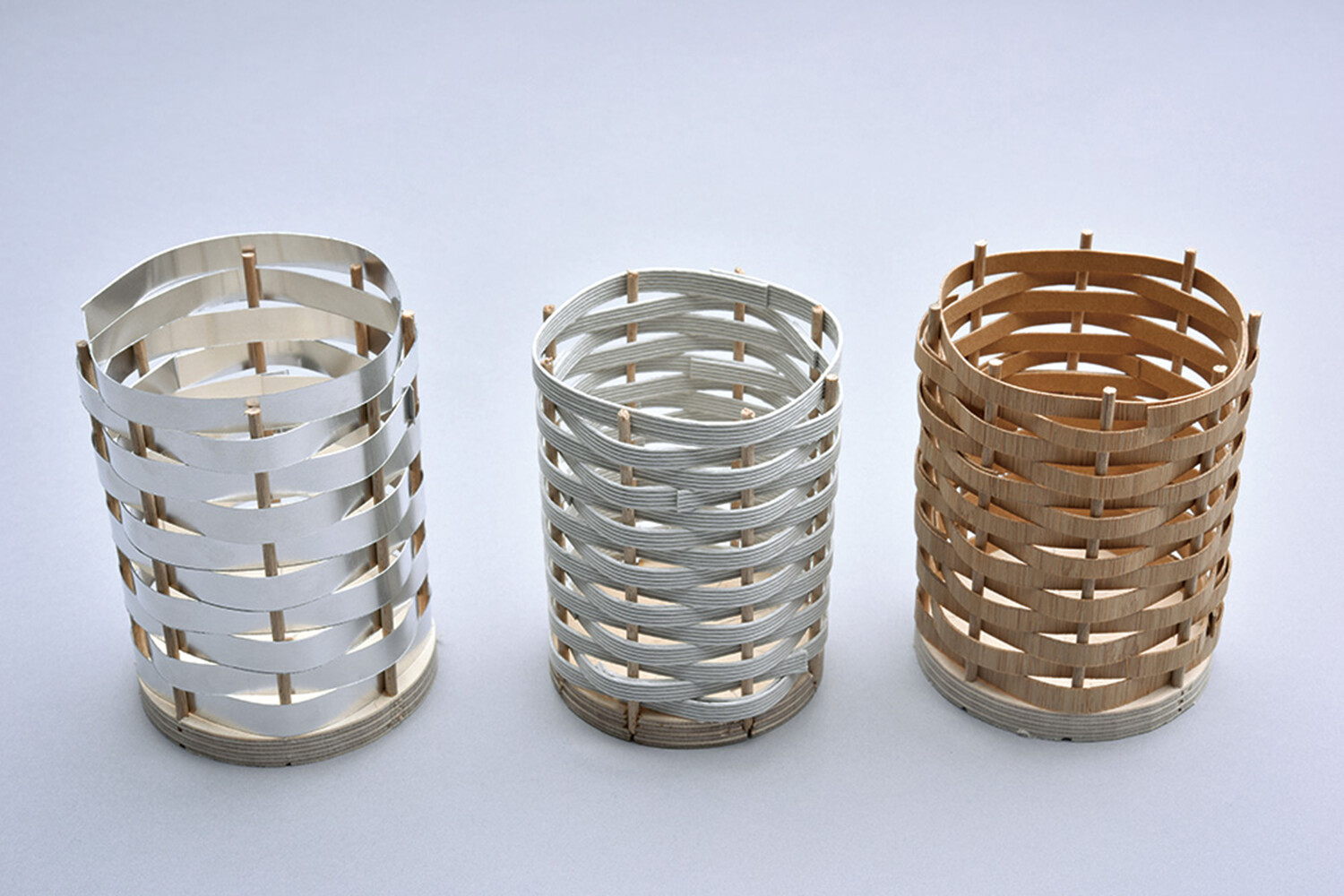In diesem Projekt wurde der Frage nachgegangen, wie man Flechtprodukte neu interpretieren kann. Das Konzept sollte auf das traditionelle Handwerk zurückgehen, aber der Korbmacherei einen neuen, modernen Charakter geben. Eine Möglichkeit liegt dabei in der Kombination mit anderen Materialien – und damit verbunden einem neuartigen Fokus auf das Material selbst. Hierzu gab es zunächst Experimente zur Verbindung von Korbgeflecht mit Holz, Metall oder Acryl. Nach Ansätzen für einen Neuinterpretation geflochtener Sitzmöbel wurde später die Schale, die sich häufig auf dem Esstisch befindet, zum Schwerpunkt gemacht.