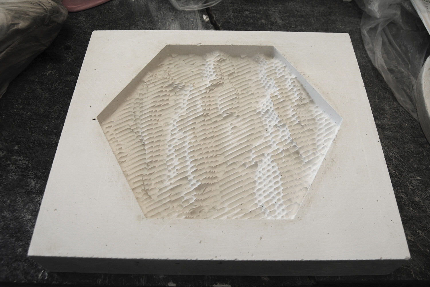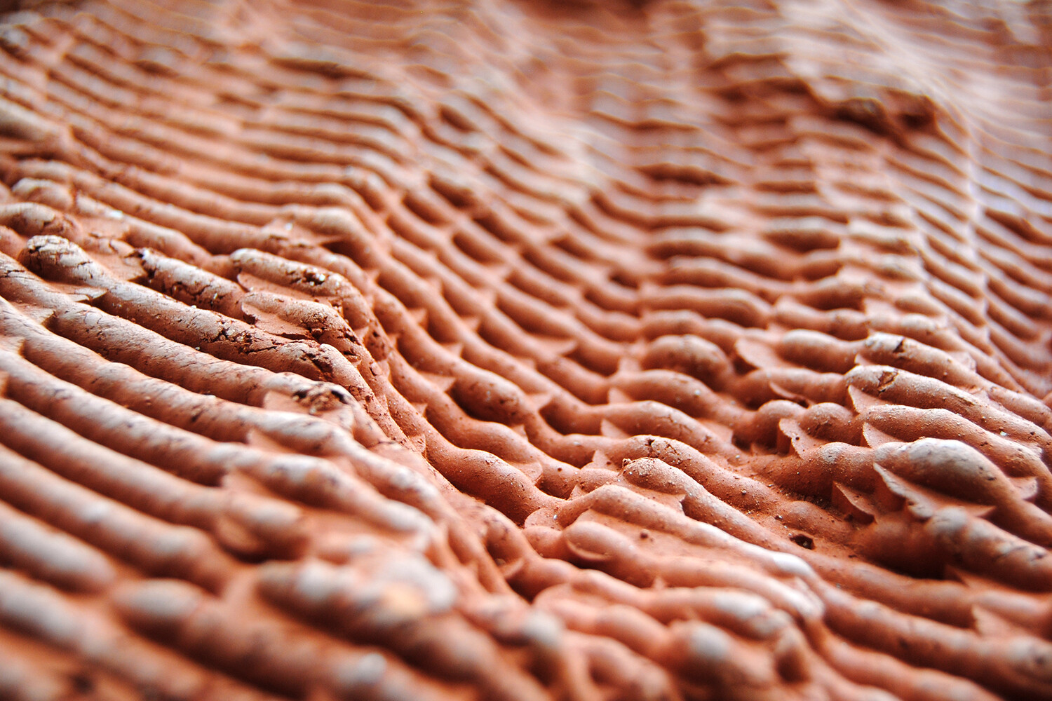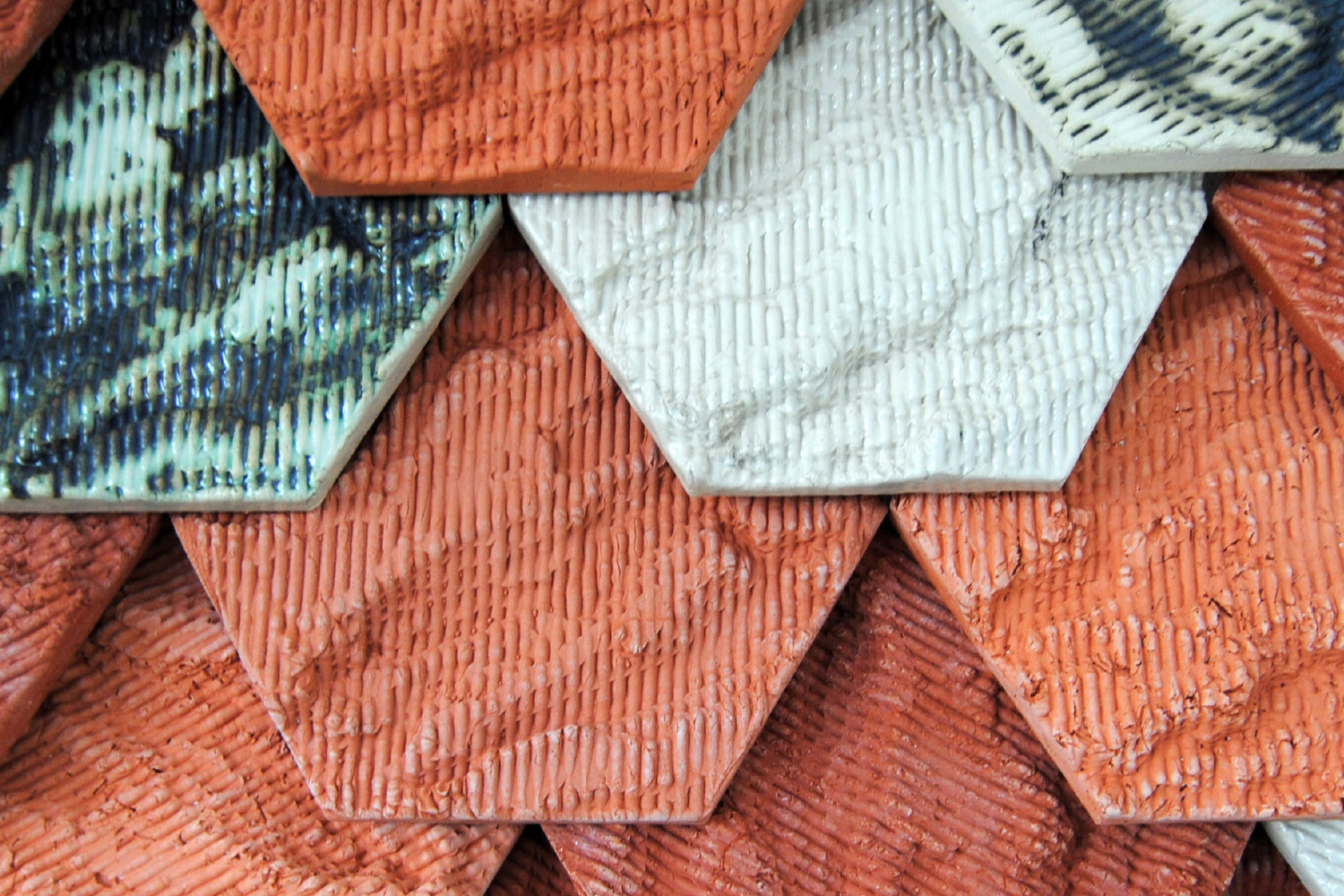 Keramische Schindeln bilden die witterungsabweisende Schicht der AuĂenwand. Parallel auf den Modulen angeordnete Rillen lassen Regenwasser langsam die Fassade herunterlaufen. Einzelne Elemente speichern durch ihre MaterialitĂ€t fĂŒr kurze Zeit die FlĂŒssigkeit. Diese teils feuchte, in ihrer OberflĂ€che maximierte Wand bietet einen verbesserten Lebensraum fĂŒr Moose und andere Pflanzen. Die Struktur der einzelnen Schindel ist durch die OberflĂ€che eines Baumstammes inspiriert. Ein einziges Modul wird unterschiedlich gedreht aufgehĂ€ngt. Im Gesamtbild ergibt sich so ein unregelmĂ€Ăiges Muster ohne Wiederholungen.